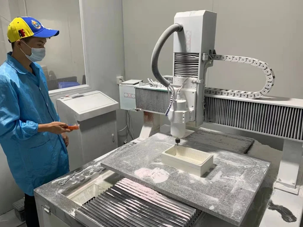工厂占有 1 万多平方米面积,拥有 10 万级无尘车间 2300 平方米,正负压成型机 7 台、PP/PS 成型片材机 2 台、全自动啤机 12 台、胶盒、PP 手提袋生产线 2 条,圆筒设备 6 条流水线及 CNC 精雕机 4 台等设备。