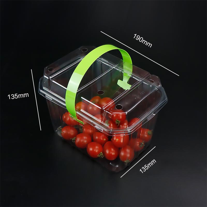 核心设计:手提式结构,便携不勒手;全透明配色 + 自然风格,适配采摘园、超市、电商零售等场景;保鲜属性延缓食材氧化,延长货架期;